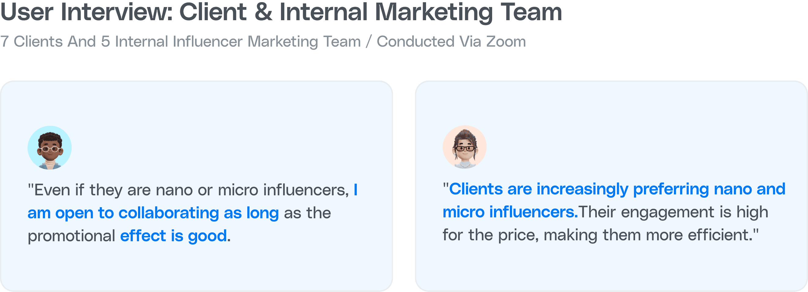Clients, Infulencers, Marketing Team Staffs